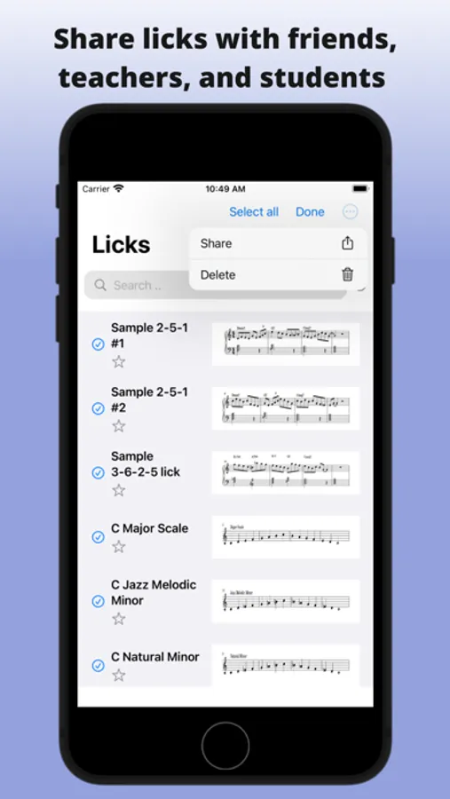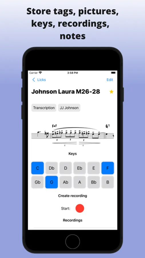 elicks is the perfect solution for musicians looking to organize all musical licks and exercises. Musicians can snap pictures of music, create recordings, take notes, and keep track of keys practiced in. A powerful search system makes it easy to find licks and exercises perfect for any chord progression, technique, key, or style. Sharing your licks with other players has never been easier with the new import/export feature available.