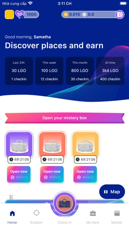 You equip yourself with NFTs Luggage/Node and use them for checking in. By doing so, you will earn tokens, which can either be used in-game to enhance your NFT assets or cashed out for profit. You can upgrade your NFT assets, breed new NFT, and unlock more exciting features.