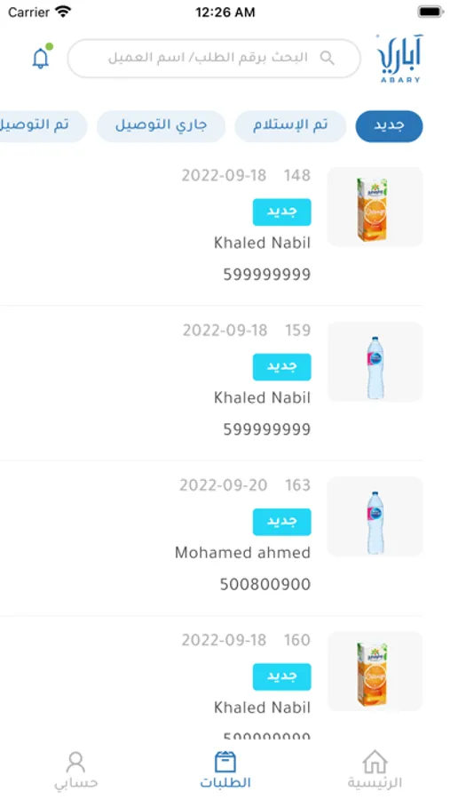 تطبيق آباري متجر الكتروني متكامل لتوصيل المياه بمختلف انواعها ، يقدم خدمة توصيل المياه للمنازل و المساجد و المدارس و المخيمات و الإستراحات و المستشفيات و قاعات الافراح والمنازل