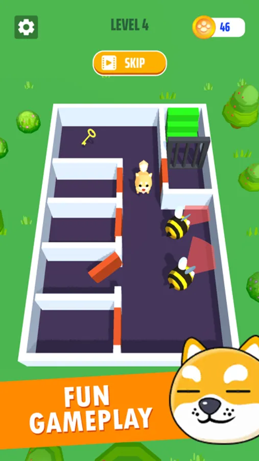 In this escape game, you help the dog navigate obstacles to complete levels. Includes offline play, multiple levels, and different obstacle types.