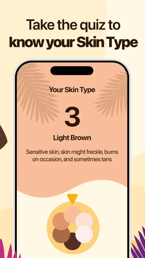 To make the app more useful we ask you to make the quick test to know your skin type. This allows us provide you personalised info about safe time under the sun.