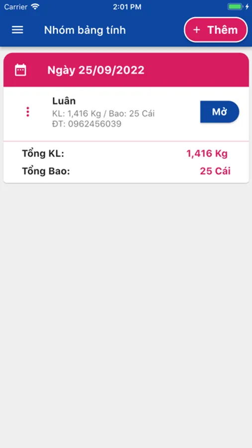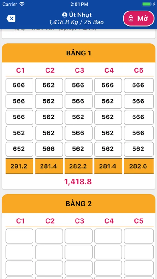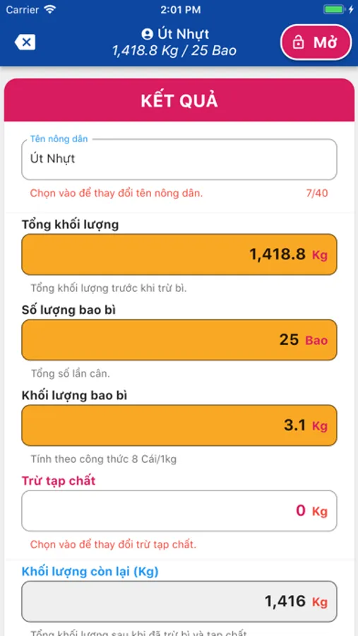 - Tự động ra kết quả tổng, trừ bì bao và thành tiền.