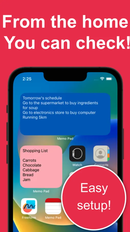 Organize your ideas and tasks by displaying a list of multiple notes.