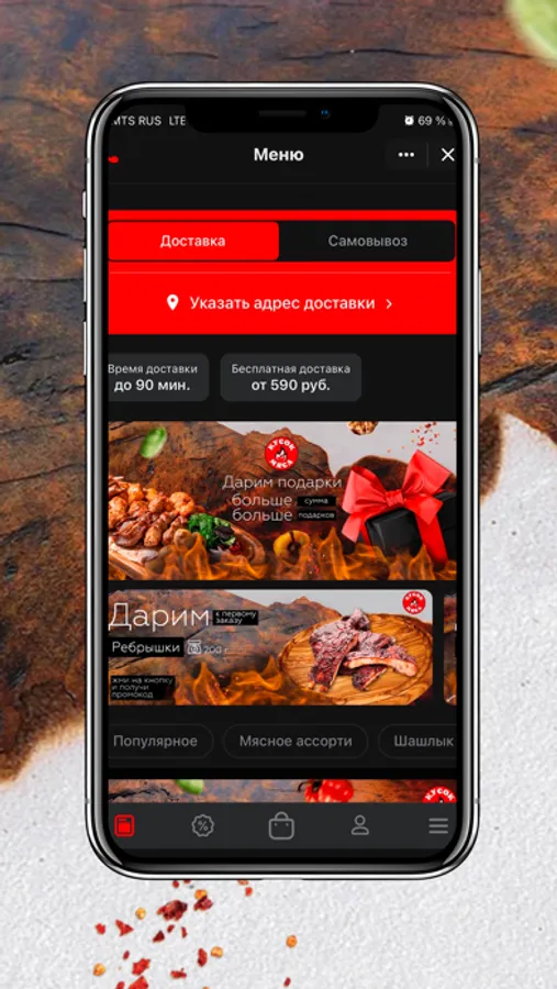 Кусок мяса - это доставка готовых мясных сетов, сочного шашлыка из тандыра, запечённых овощей на гриле, а также горячих закусок и соусов.