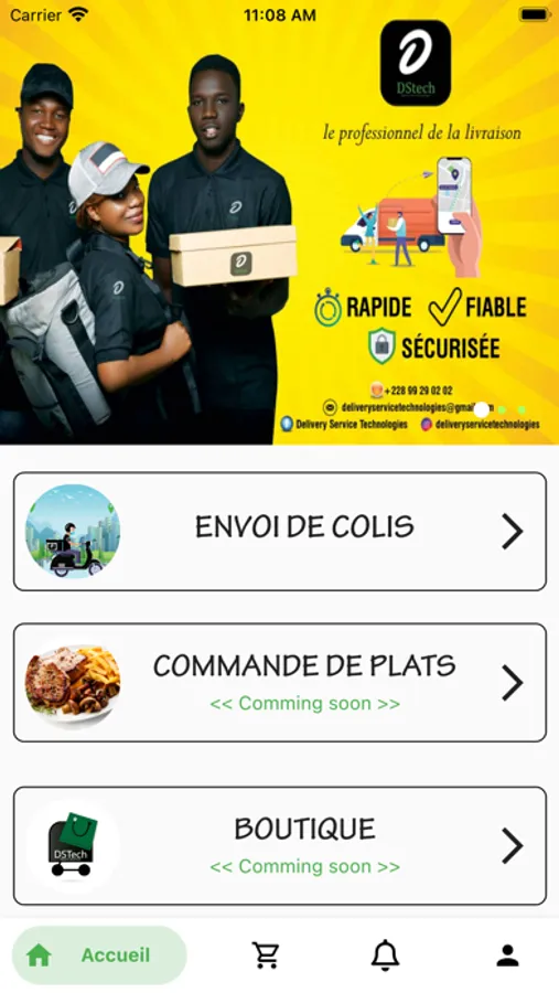 Delivery Service Technologies (DSTech) est une société spécialisée dans la livraison des colis, le E-commerce, l'import-export, l'immobilier et dans bien d'autres domaines.