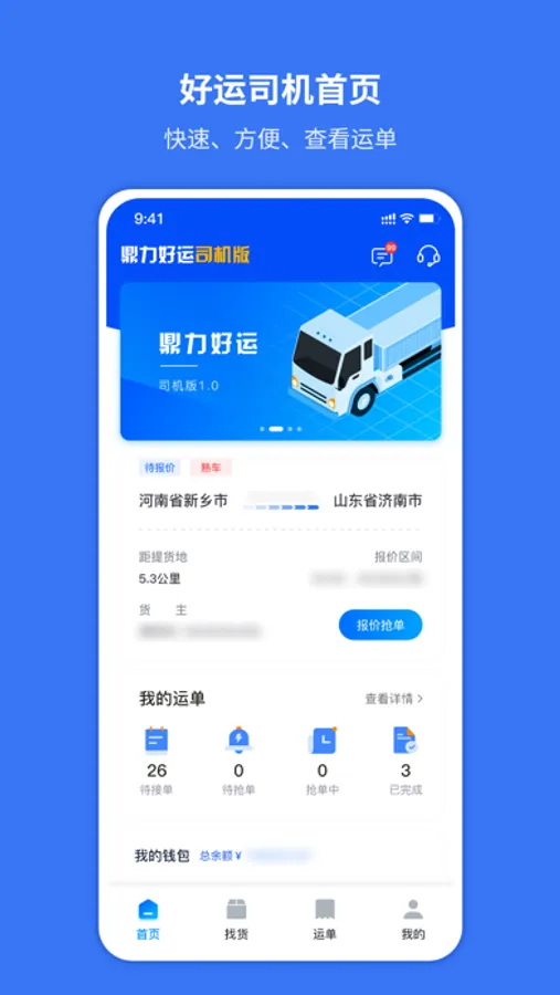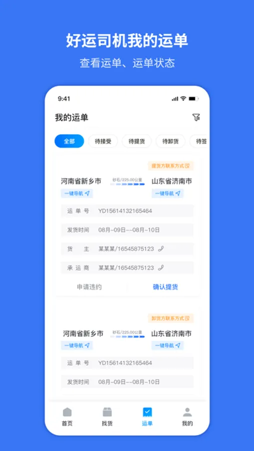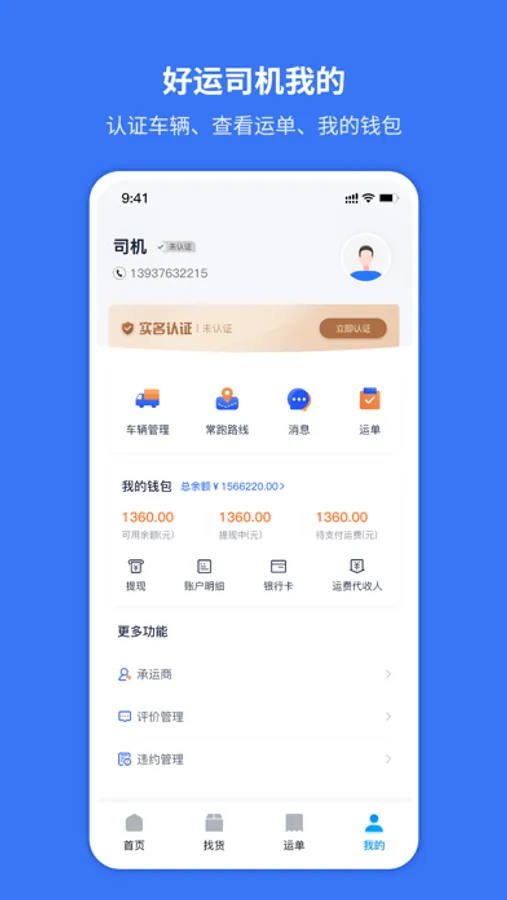 货主与司机的货物运输业务,做到业务流、信息流、资金流、票据流、货物轨