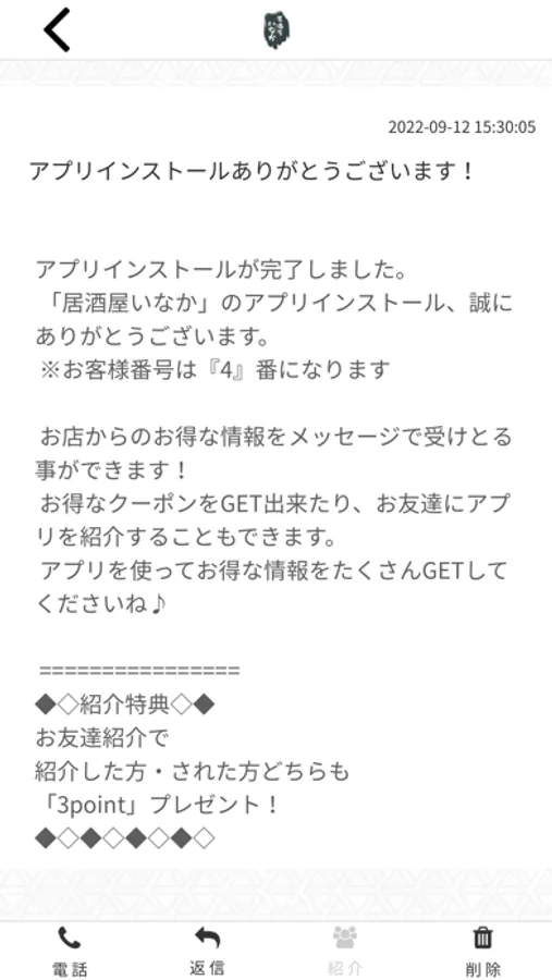 居酒屋いなかのアプリをSNSを通じてお友達に紹介する事ができます。