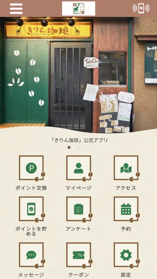 このアプリでは、きりん珈琲の最新情報の受け取りや便利な機能を使う事ができます。