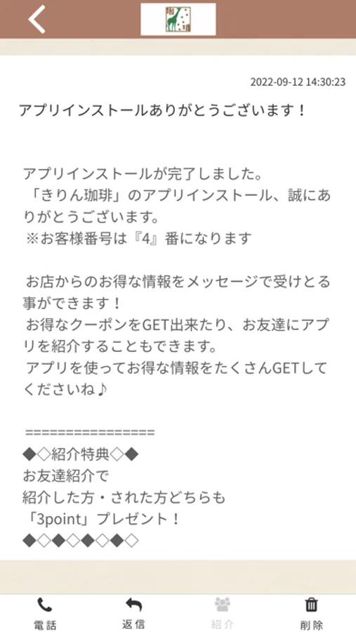 きりん珈琲のアプリをSNSを通じてお友達に紹介する事ができます。