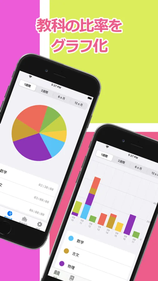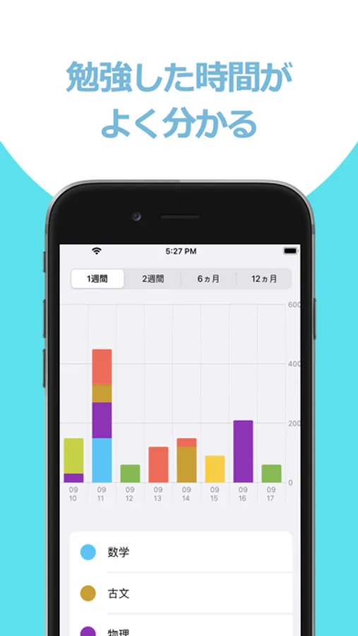 勉強した時間を可視化することにより、苦手な教科の勉強時間の不足を把握してください