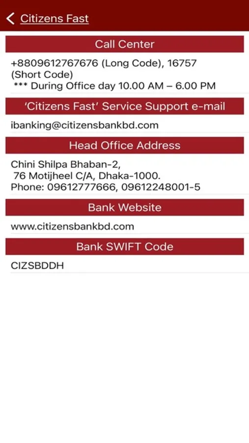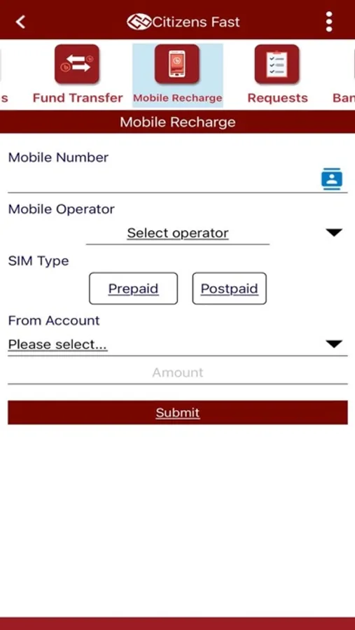The following services are currently available in the “Citizens Fast” Mobile App: