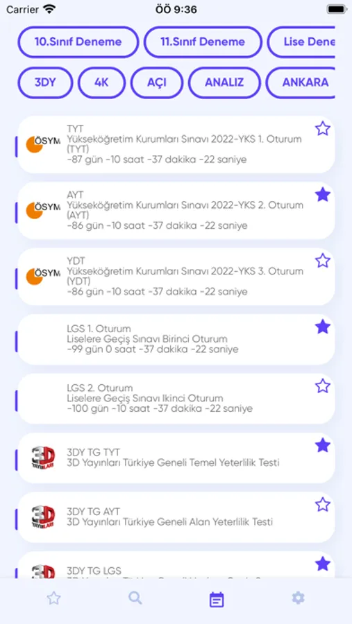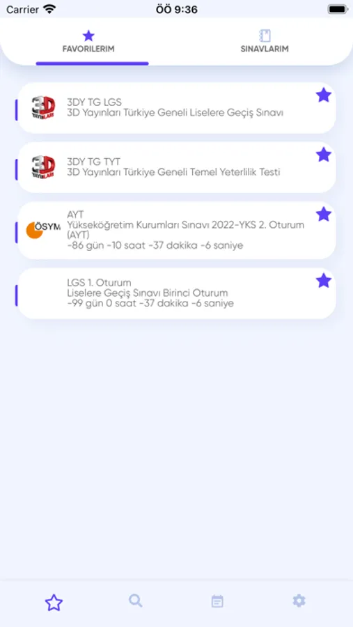 Sınav Takvimi sayesinde takip etmek istediğiniz tüm sınavlara ve kendi ekleyebileceğiniz sınavlarınıza bir dokunuşla ulaşabilirsiniz.