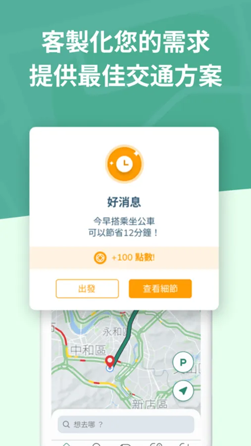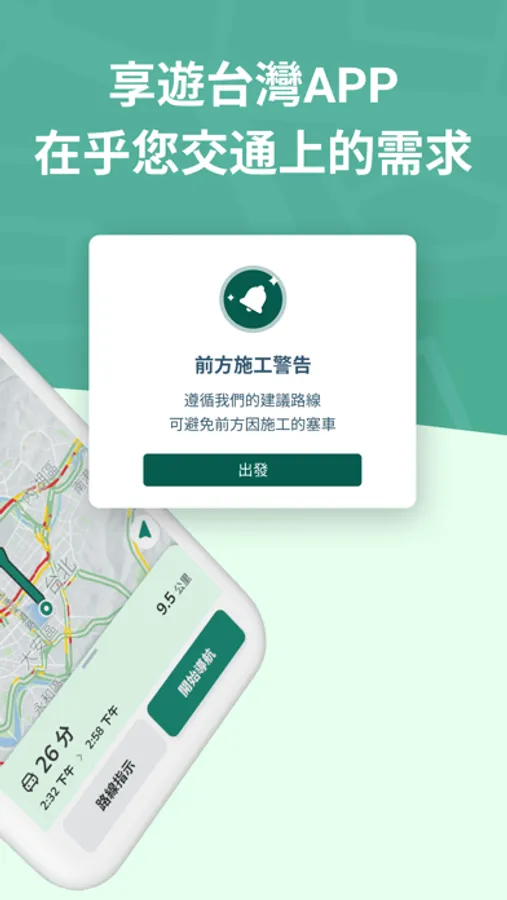 享遊台灣一手掌握交通資訊,整合了台灣完整的大眾運輸,包含高鐵、台鐵、捷運、客運、公車資訊,輸入起點與終點,立即找出最佳路線,讓您輕鬆遊台灣。