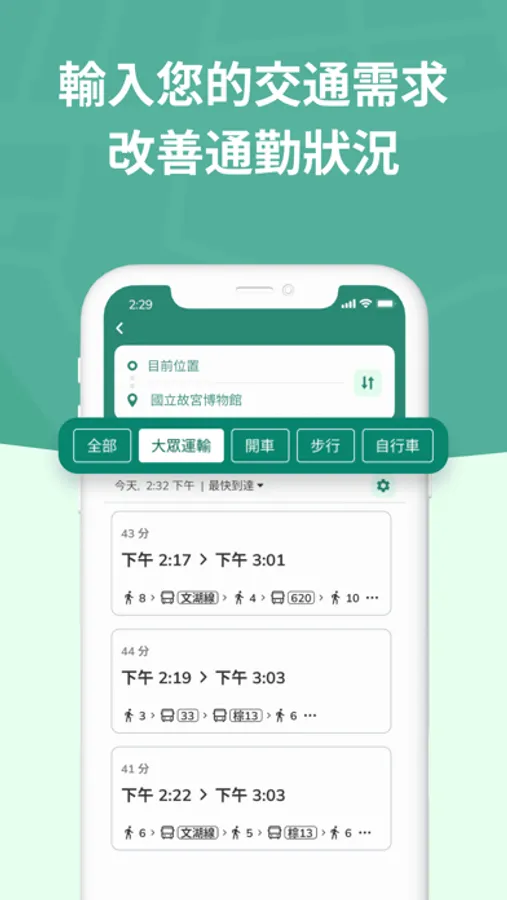 詳細且完整的交通資訊,包含轉乘資訊,班次、時間、轉乘站名等,是您通勤、返鄉、出差、出遊的好幫手!