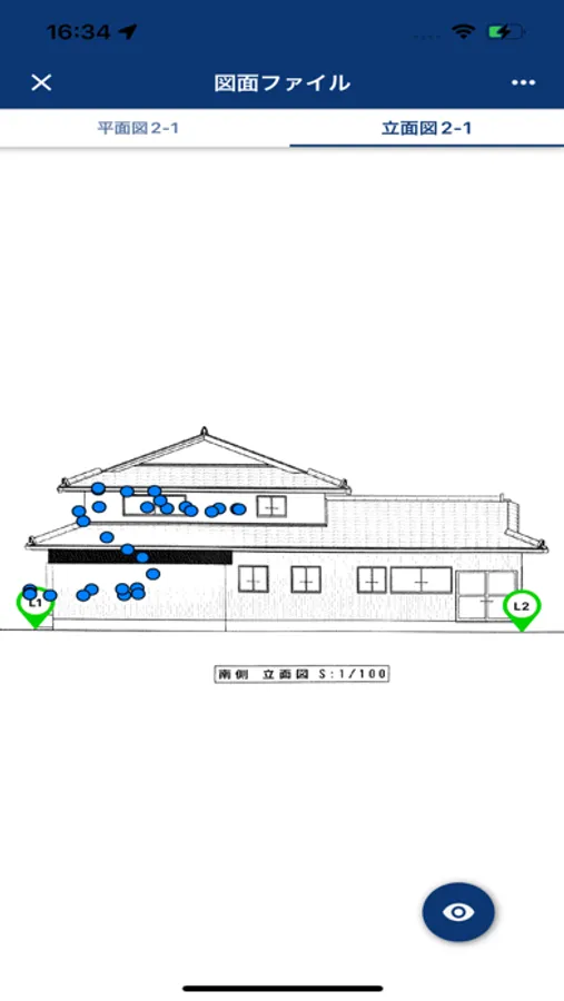 Based on the map function of iOS mapry, mapry bridge inspection is an application that allows users to save and display point clouds and photographs taken with the 3D scanner function in relation to drawings (plans, elevations, etc.) of buildings registered on a map.