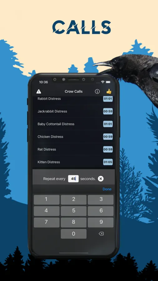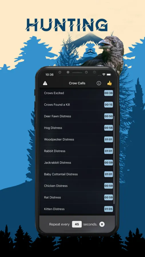 No longer do you need drag along bulky electronic callers to your favorite hunting spot to be a crow hunting pro. With this crow hunting calls app you can simply select from many different crow sounds to attract crows to where you want them.