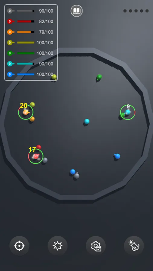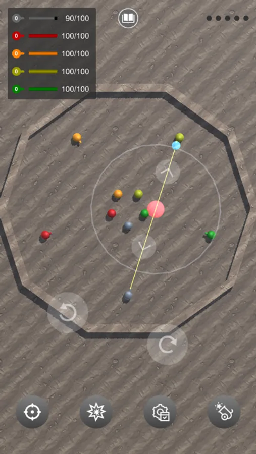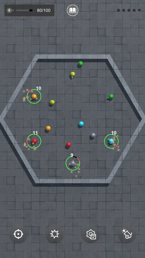 The main gameplay is to use the aiming of the turret to launch artillery shells, use the shell explosion to hit the small ball, and let the small ball hit the turret to cause damage.