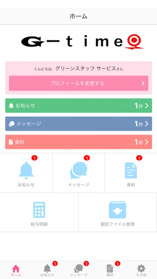 G-timeアプリは、グリーンスタッフサービスが提供するコミュニケーションツールです。