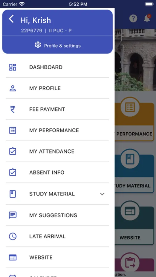 This app will help parents to get information about college and their children. Information about regular events, calendar, result, fee payment, etc. is displayed in mobile app.