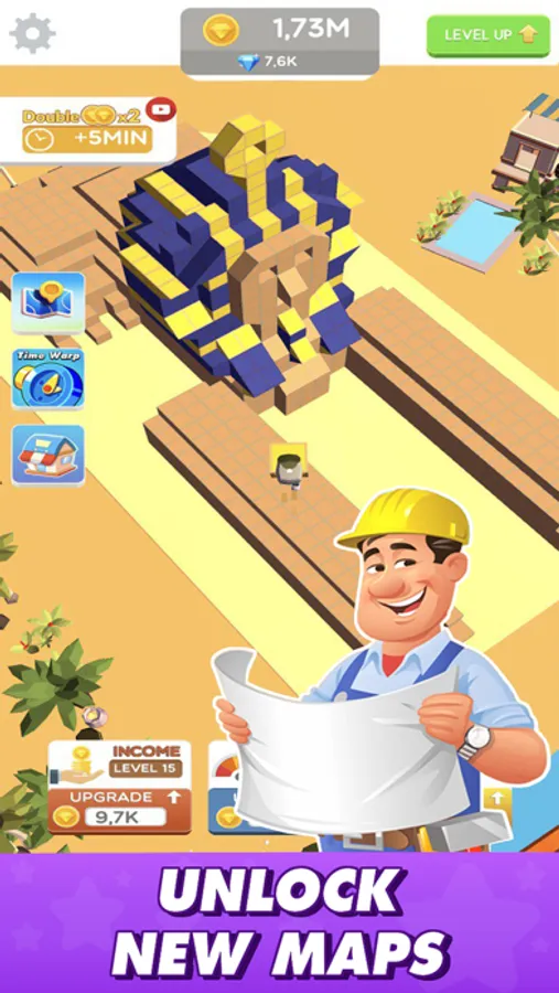 Travel the world, unlock famous and new landmarks and build them from ground up. Block craft is the part of the game mechanics which is also a combination of idle games together with tap tap and clicker mechanics.