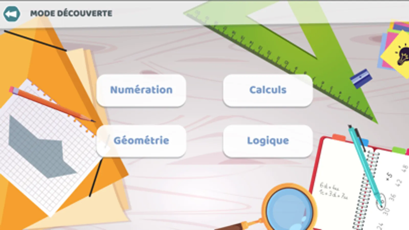 • Découverte : pour se familiariser avec les différents exercices des missions.