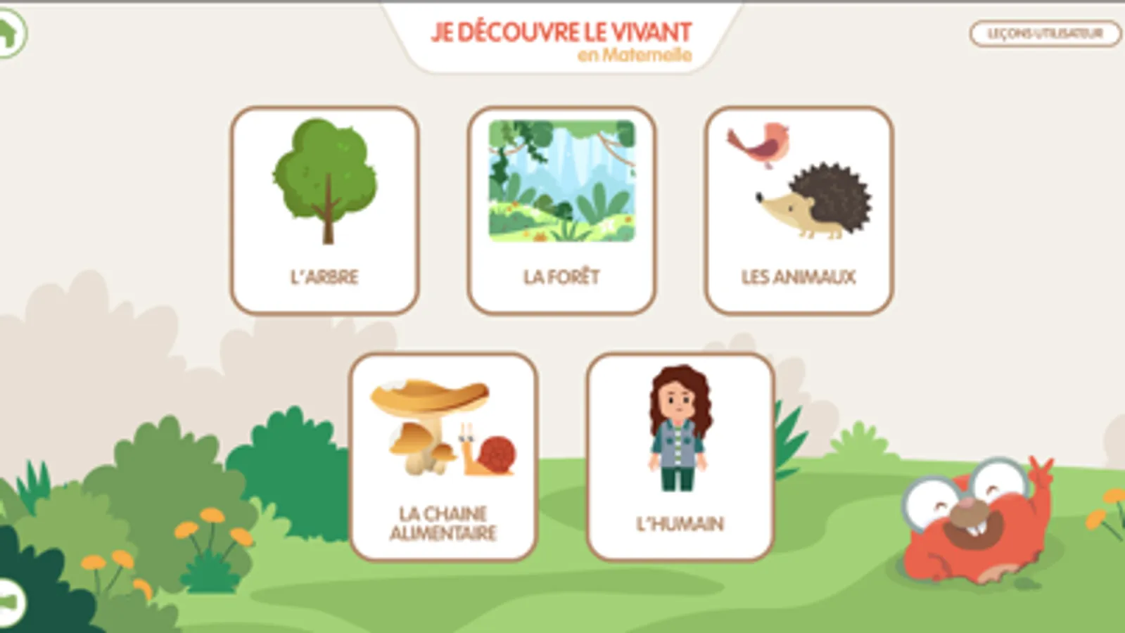 Cette application, accessible depuis la plateforme Jocastore, propose 16 leçons numériques très illustrées pour faire découvrir la notion de vivant aux élèves de maternelle.
