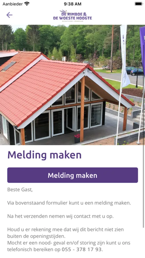 De Rimboe en De Woeste Hoogte is een vakantiepark in Hoenderloo, een dorp in de buurt van Apeldoorn, in de provincie Gelderland. Ons park ligt middenin het natuurgebied de Veluwe. Vakantie vieren op ons park bij de Veluwe is een ultieme belevenis. Er is veel te doen, voor jong en oud. Bij ons kunt u verder het volgende verwachten: Ruime accommodaties; Rust en ruimte; Goede faciliteiten; Leuke speeltuin voor kinderen; Zwembad tegenover de camping.
