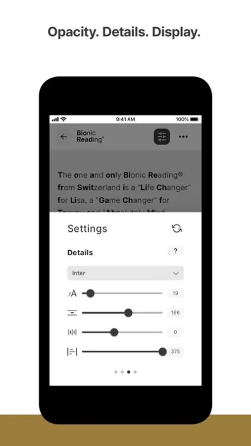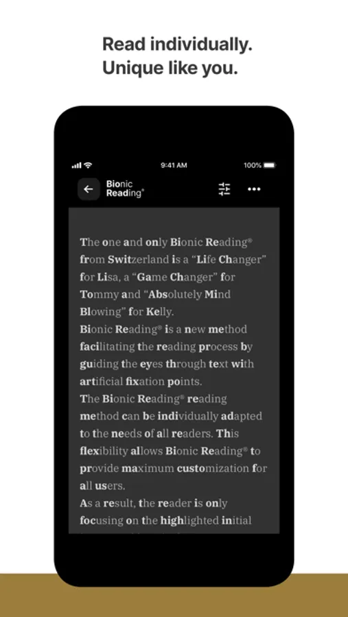 The Bionic Reading® reading mode can be individually adapted to the needs of all readers. This flexibility allows Bionic Reading® to provide maximum customization for all users.