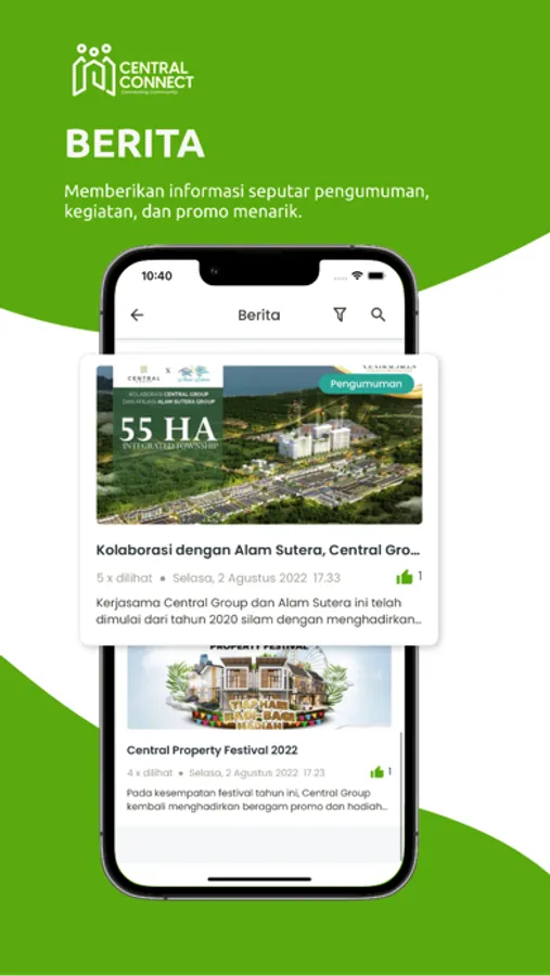 Central Connect merupakan Aplikasi hunian pertama di kota Batam. Central Connect memberikan keamanan, kenyamanan, dan kemudahan dalam hunian anda