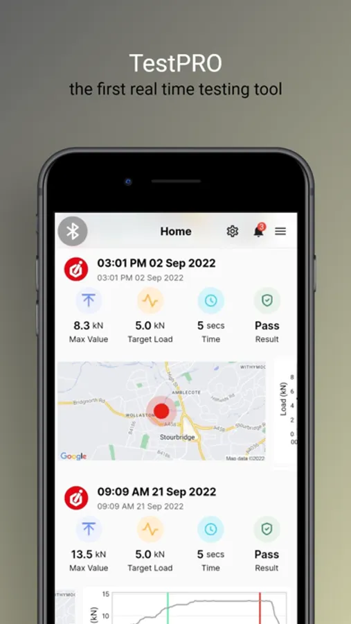 It features a unique proof load testing app, which connects to ICCONS proprietary PT60 tool, allowing users to perform a tensile test on construction anchors and eyebolts while visualizing and registering data in real-time, logging into their unique profile, saving and generating test reports to be shared with the team members and customers