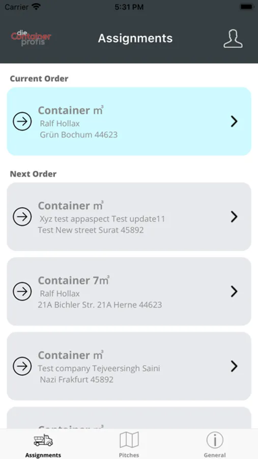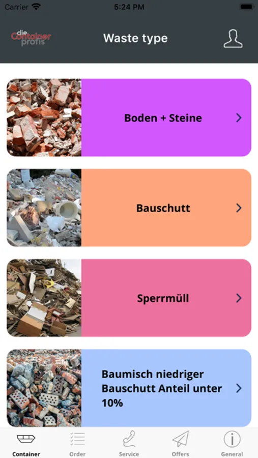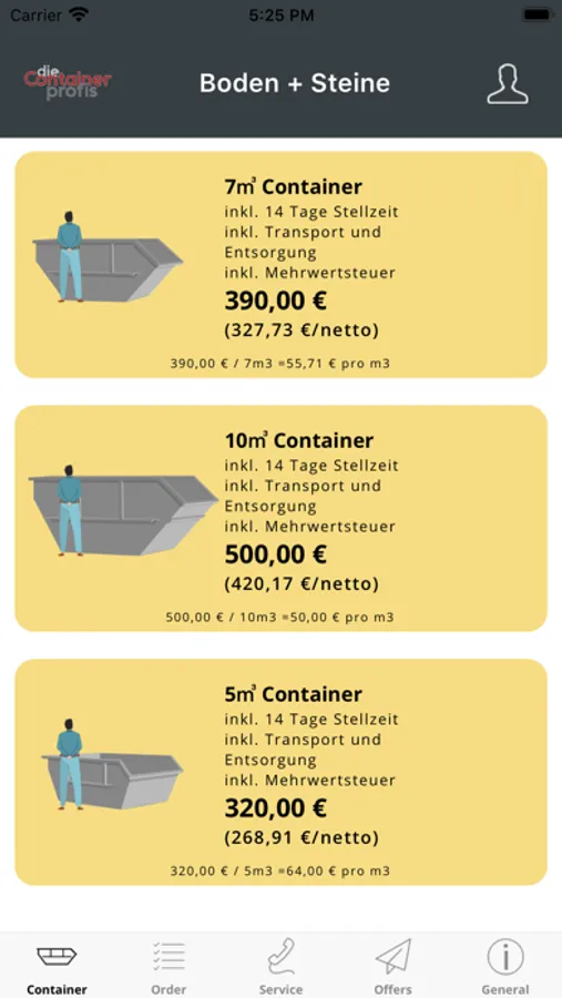 In der Abfall Container-App können Sie dann Ihre Aufträge verwalten, sehen Rechnungen und Lieferscheine ein.