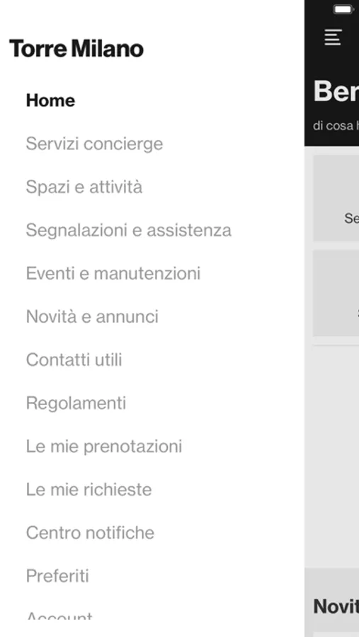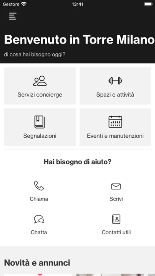 App per visualizzare servizi, attività e spazi presso Torre Milano, effettuare prenotazioni e contattare il concierge.