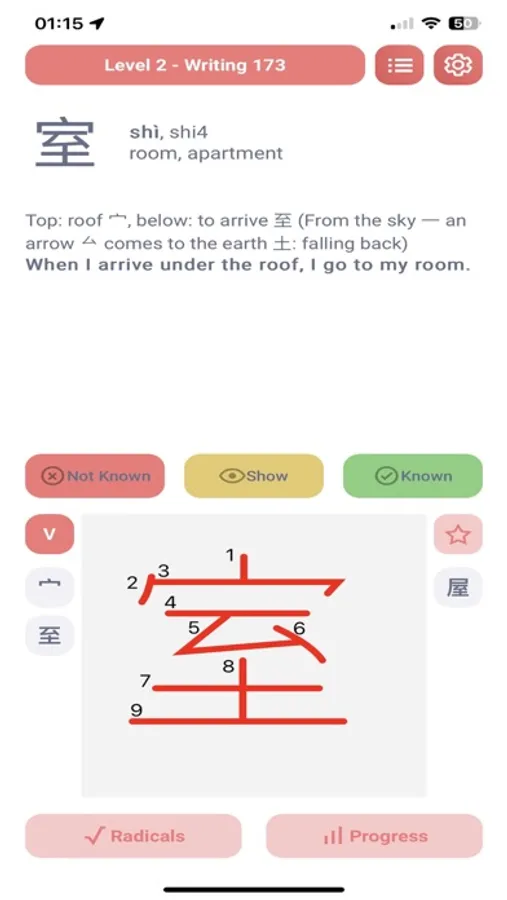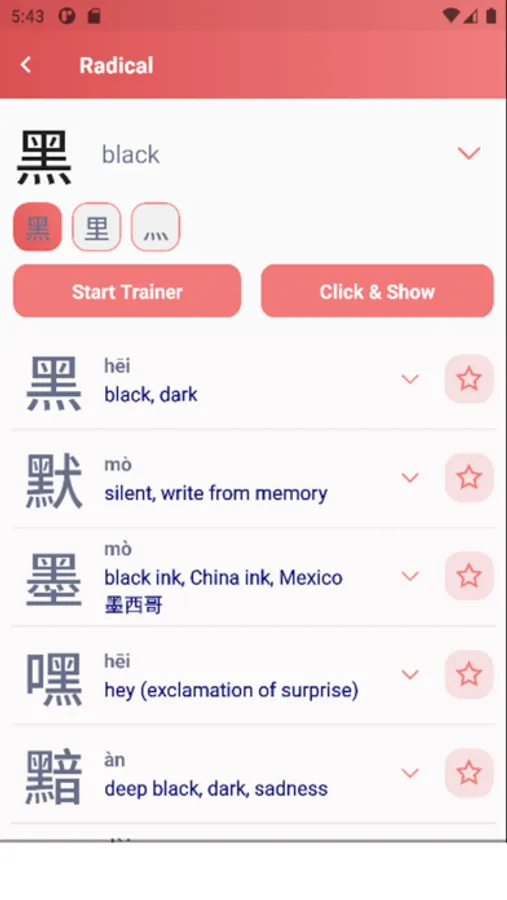 - almost 700 radicals as recurring elements that can be selected for learning the differences and simularities