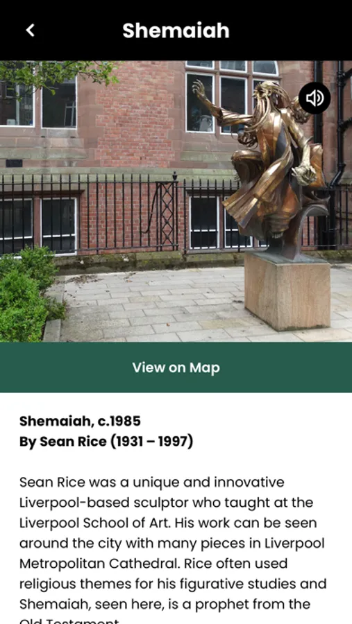 All the sculptures are displayed outside and can be viewed by following the app’s route around campus. The app shows a photograph of each sculpture, accompanied by textual information and an audio description.