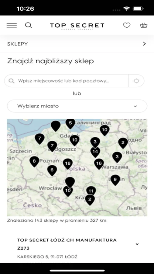• Użyj funkcji geolokalizacji - pozwoli Ci znaleźć najbliższy salon TOP SECRET.