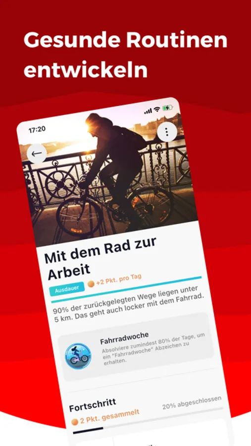 • Schritte sammeln: Sammle täglich Schritte, um auch die Ausdauerkomponente in deinen Alltag zu integrieren. Eine Integration der Schrittpunkte erfolgt derzeit je nach Gerätetyp über Apple Health oder Google Fit.