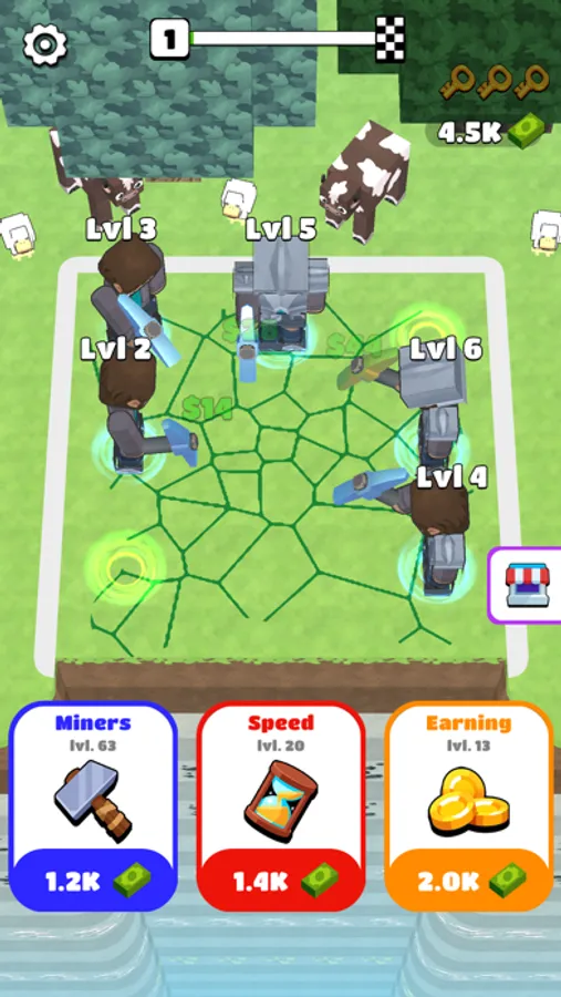 Start digging by hiring miners and making your first profits. Upgrade characters by merging them together to earn more and dig faster. But be careful, legends say there are monsters that live deep in the ground.