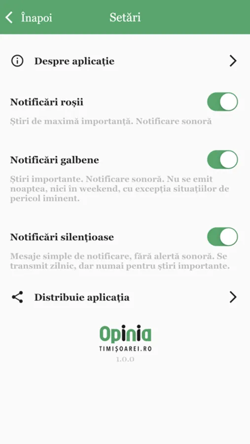 Aplicatie de stiri din vestul tarii. Opinia Timisoarei va ofera notificari si alerte legate de stirile care va intereseaza cu adevarat. Alertele pot fi sonore sau silentioase, optiune pe care o puteti alege chiar dumneavoastra.
