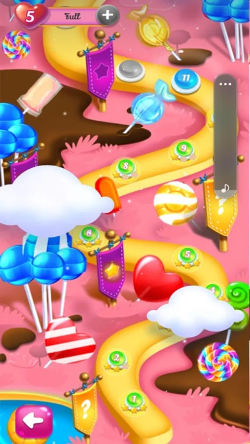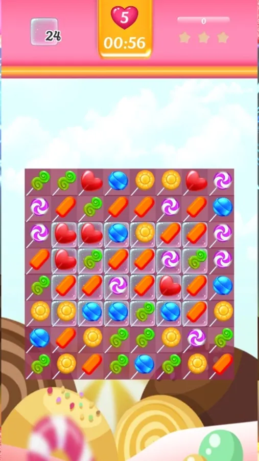 - Intuitive match 3 game play with 6 different candy pieces establishing sufficient difficulty