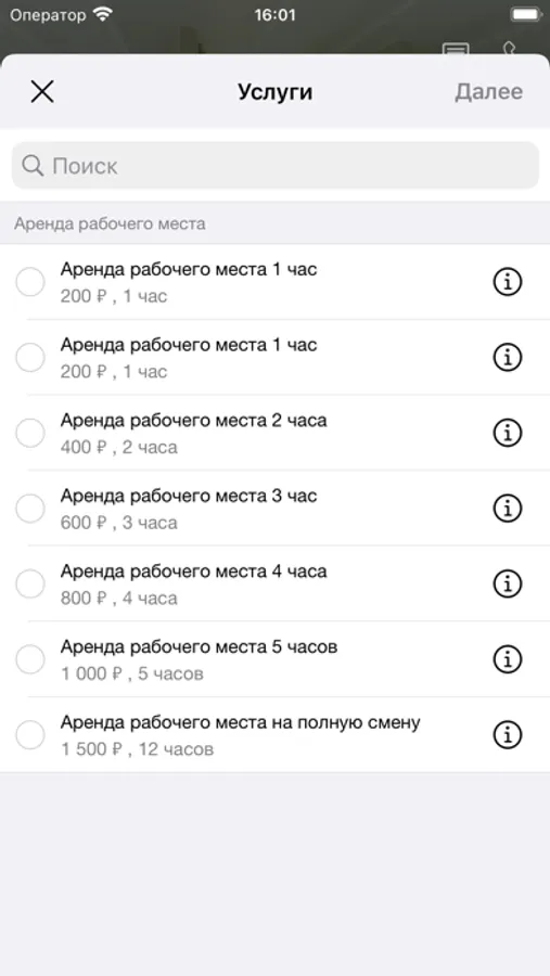 *перечень доступных мест с указанием стоимости