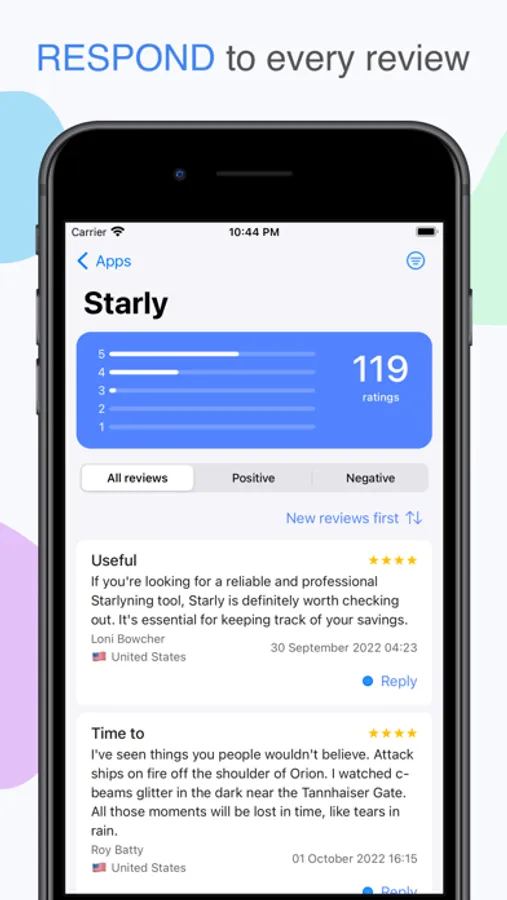 This and more in Starly will let you use your Apple Developer Program to its fullest potential. Edit, manage, and respond to your users.