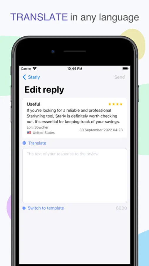 The Starly app is a project that will allow developers to manage reviews on the App Store with ease. You can reply to them, translate them to the language you want, filter them, and create templates.