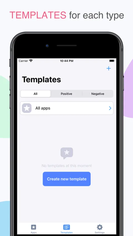 - Creation of templates. For any type of reviews, for any of your applications, in any quantity.