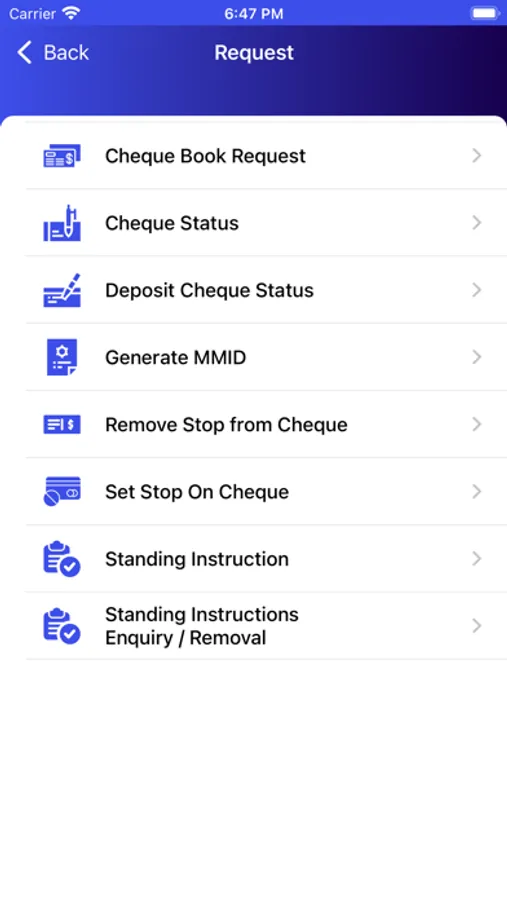 Following Facilities are available in the Mobile Application:- Banking Transactions-Account Details and Statement Fund Transfer-Own Account, Third Party Transfer within Bank Fund Transfer-Transfer to other Bank's Account-NEFT IMPS Transfer using Account number and IFSC, Mobile number. Cheque Operations