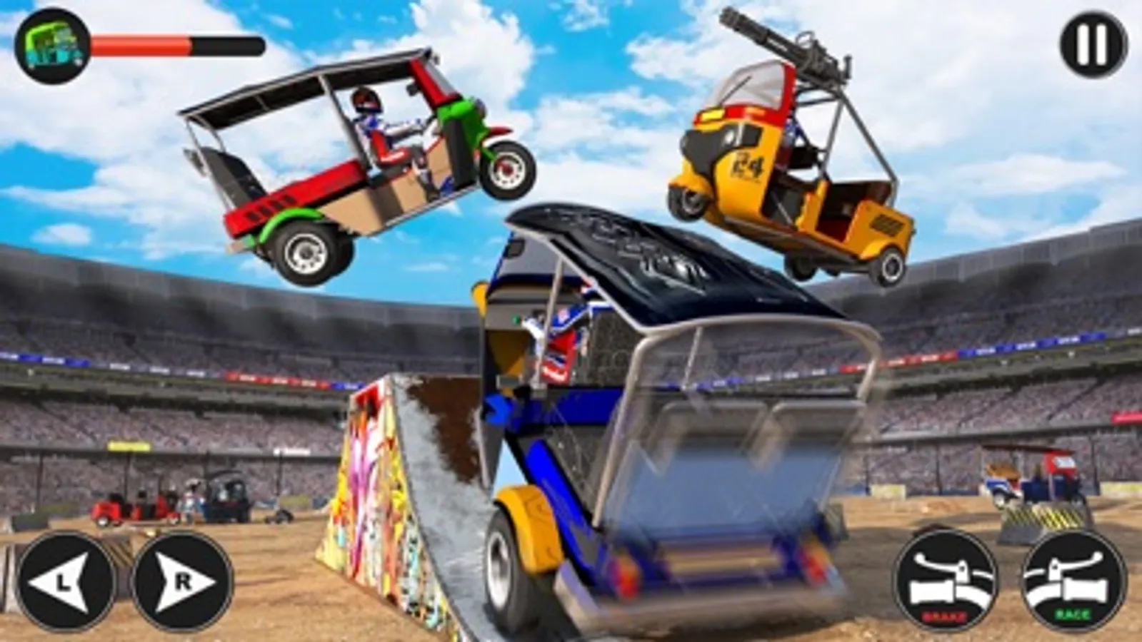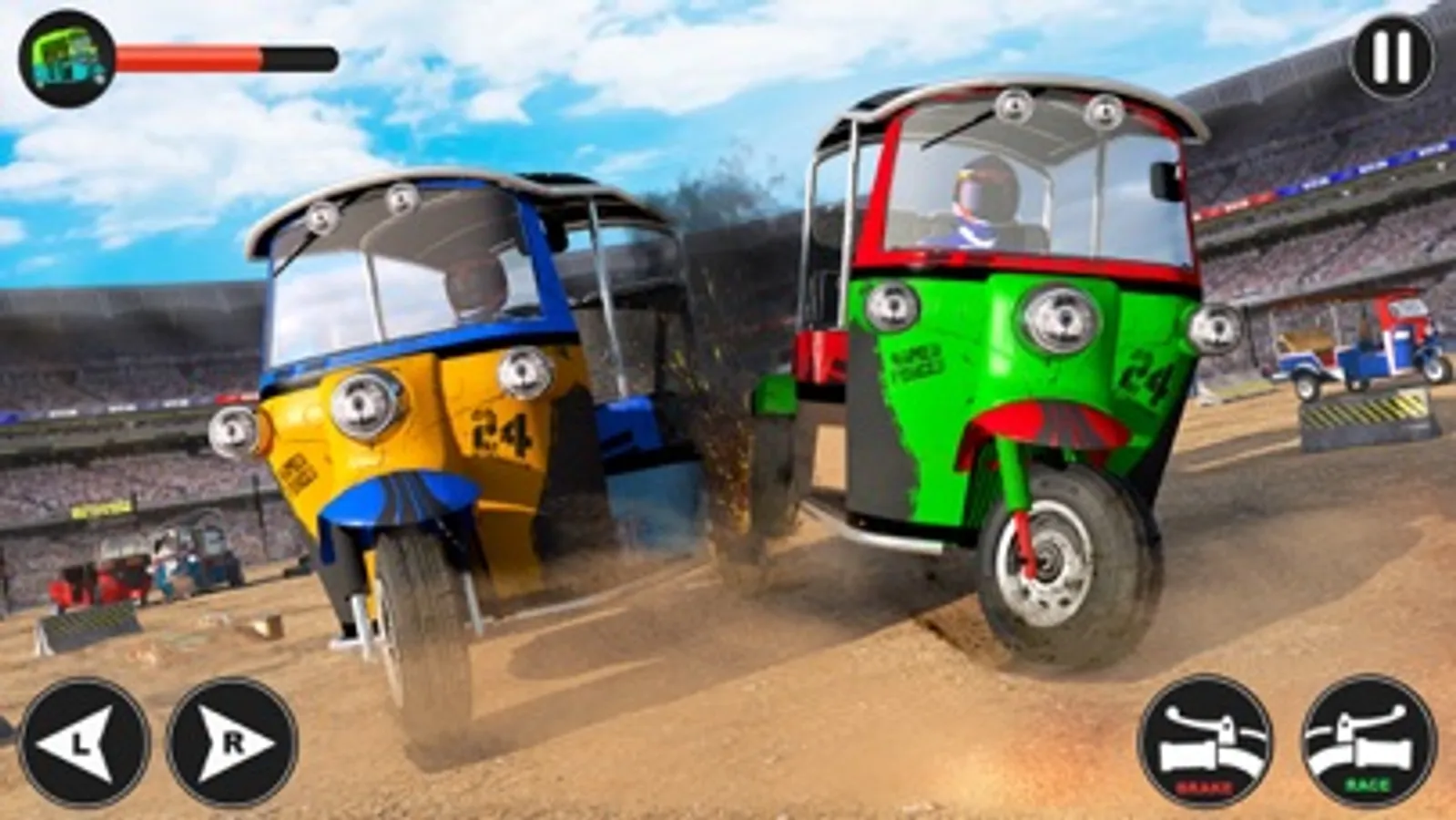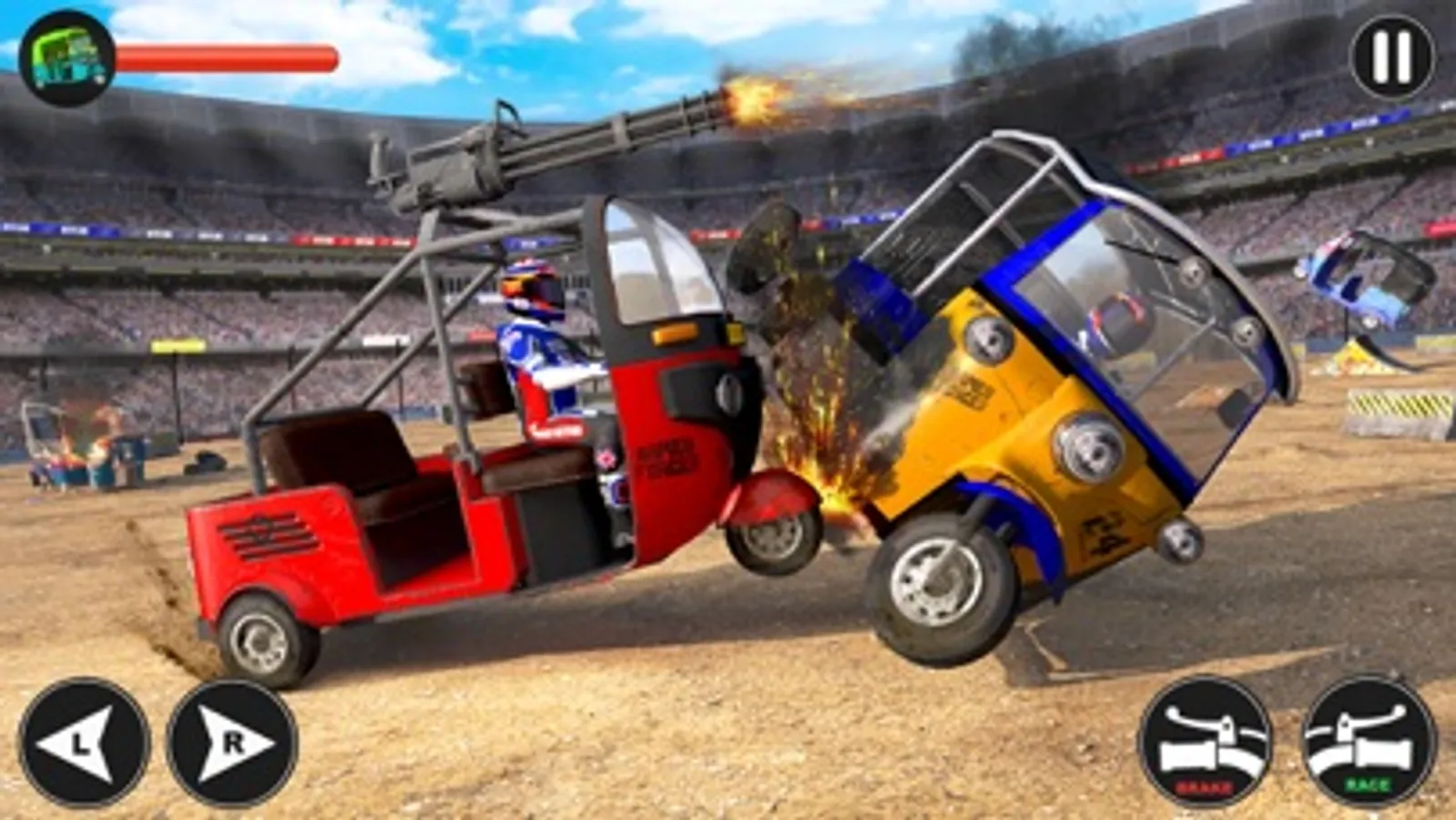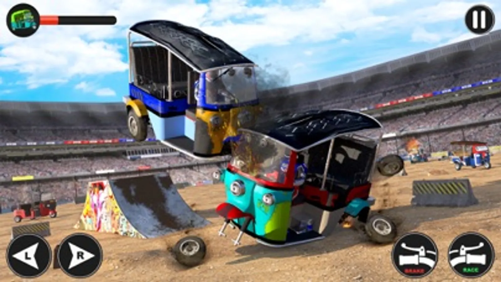 Tuk Tuk Auto Derby Crash Stunts Demolition real car simulator performs extreme speed. Extreme stunts Auto games maneuvers to battle with strong sturdy opponents inside Real Tuk Tuk Rickshaw Demolition car derby crash stunts Xtreme racing arena. Stunts by Rival Auto TUK TUK looks so real that you can only win if you catch them off guard and fly them off the Derby Demolition Arena. Auto TUK TUK driving simulator by properly using Auto Rickshaw derby Body to damage derby car vs Auto TUK TUK opponents in best of Real Tuk Tuk Rickshaw Demolition Derby Stunt in Travel and Local to simulate Derby Arena world in this Modern Tuk Tuk Rickshaw Demolition Derby Stunts.