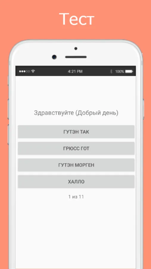 Русско-немецкий разговорник можно использовать соответственно, как разговорник, так и инструмент для изучения немецкого языка. Все немецкие слова написаны русскими буквами и разбиты на 10 логических тем, то есть разговорник рассчитан на русскоговорящего пользователя (туриста).