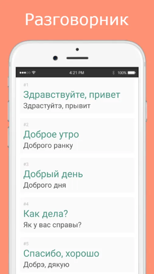 Русско-украинский разговорник можно использовать соответственно, как разговорник, так и инструмент для изучения украинского языка. Все украинские слова разбиты на 10 логических тем.