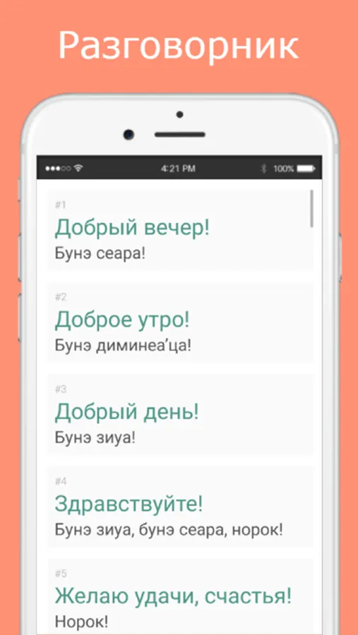Приложение позволить Вам сделать первый шаг к изучению языка с нуля, заинтересовать вас, а дальше уже Вам решать - ограничиваться только разговорными фразами на русском языке, или идти дальше, изучая грамматику, лексику и синтаксис.