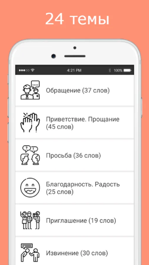 Для изучения, в разговорнике представлены следующие темы: