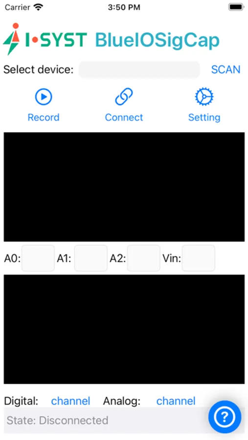BlueIOSigCap is a mobile app that functions as a data terminal that captures signals from the Bluetooth bridge device BlueIO832-Mini, a product of I-SYST Inc Canada.